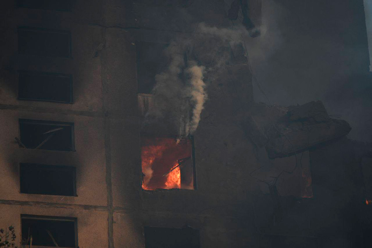 По словам мэра города Игоря Терехова, российские вооруженные силы сбросили авиабомбу на 12-этажный дом в Индустриальном районе.