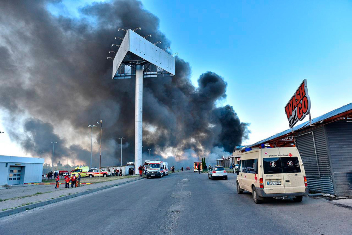 После удара в ТЦ начался сильный пожар. Мэр Харькова Терехов поначалу сообщал о четырех погибших, но после цифра выросла до 12.