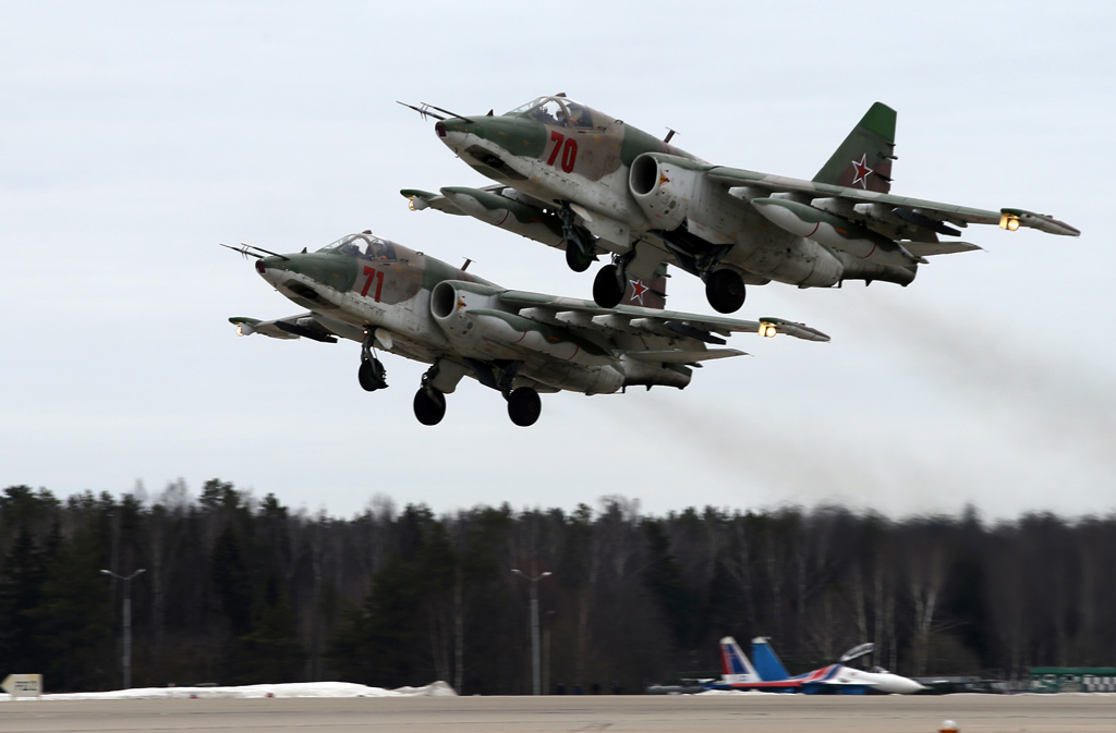 Среди основных задач штурмовика СУ-25 "Грач" – уничтожение наземных объектов (подвижных и неподвижных) в любую погоду и время суток. Также СУ-25 поддерживает сухопутные войска на поле боя.