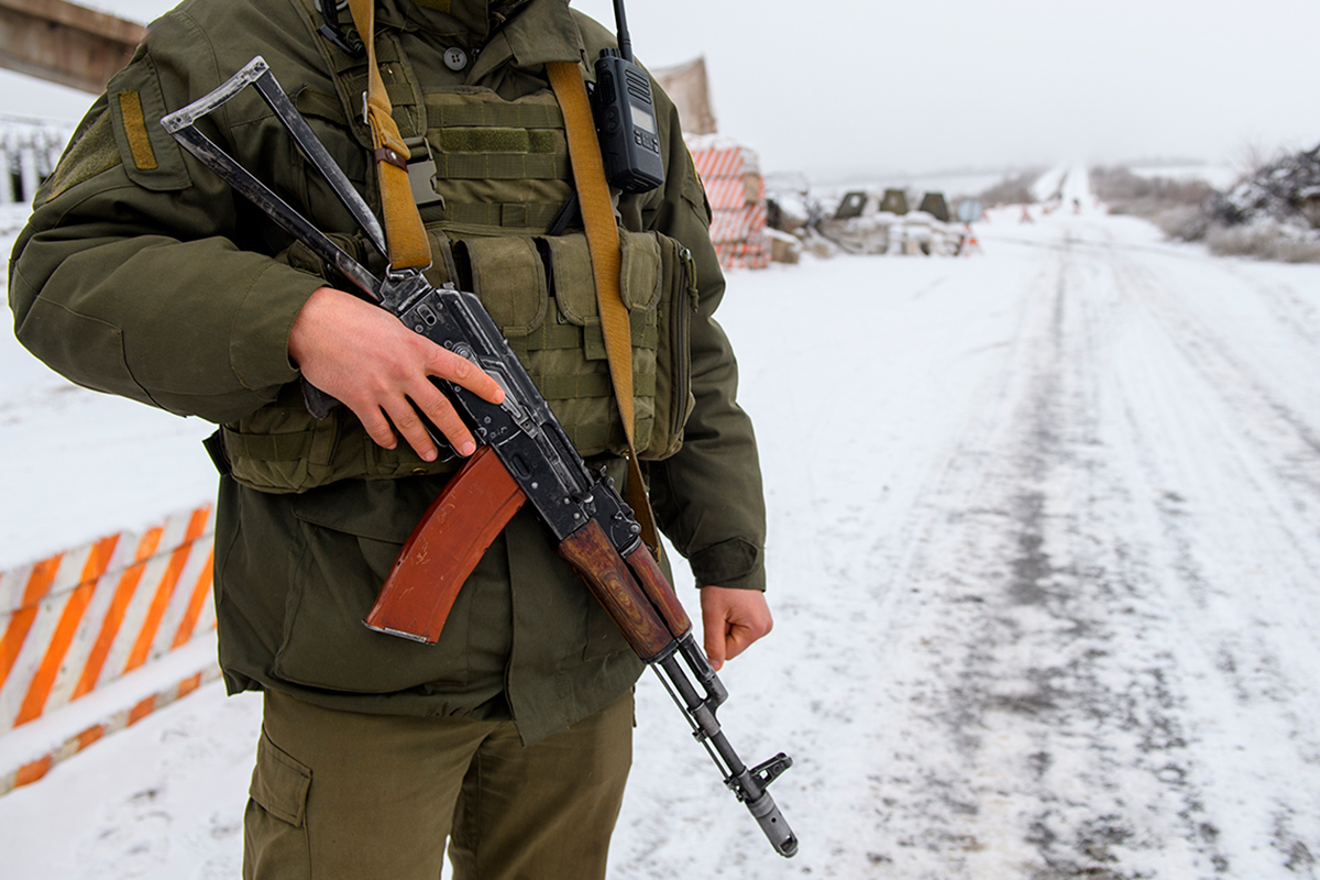На кадрах видно, как агрессивные женщины напали на военных и стаскивали маскировочную сетку с блокпоста.