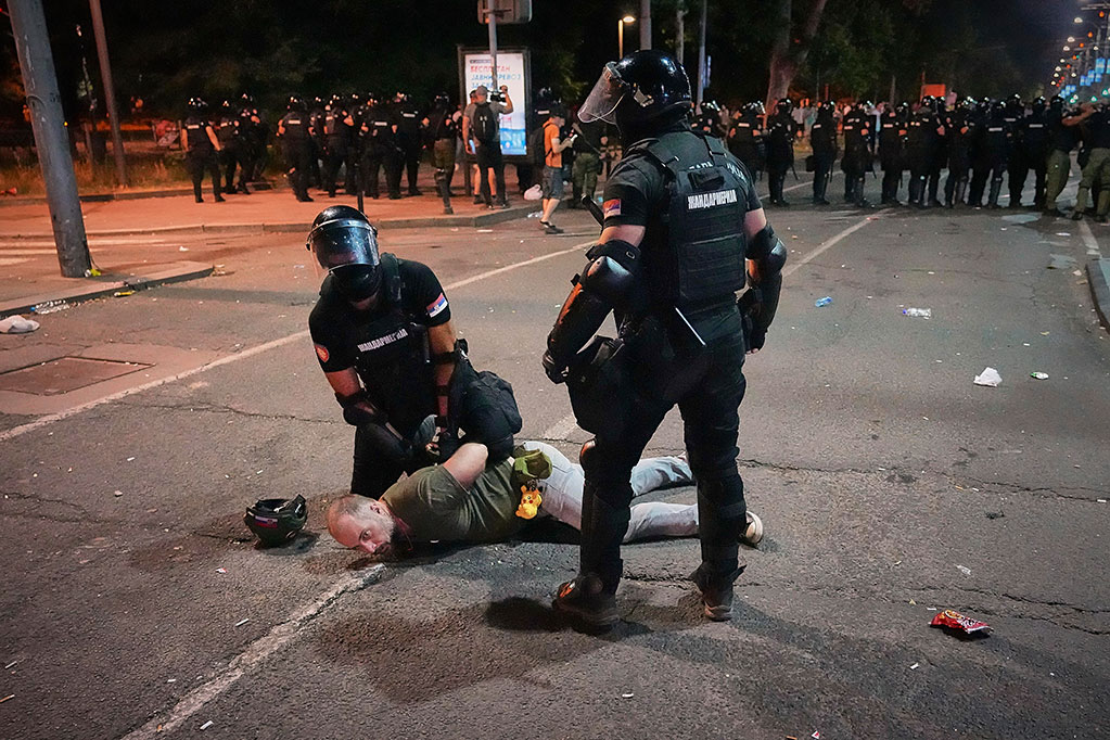 После завершения митинга часть участников протеста перешла к зданию парламента. Люди остановились примерно в 50 м от кордона жандармерии, перекрывавшего подходы к Скупщине. Некоторые из них пытались спровоцировать правоохранителей.