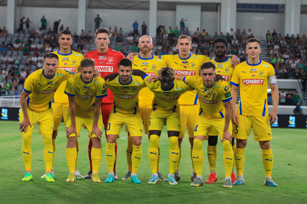 В формально домашнем поединке (белорусские команды принимают соперников на нейтральных полях и без зрителей) борисовчане открыли счет усилиями Артема Концевого.