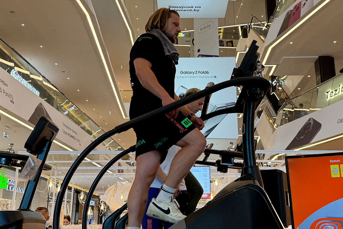 За новым уникальным достижением можно было наблюдать на первом этаже торгово-развлекательного центра Galleria Minsk. Именно здесь был размещен тренажер, на котором спортсмен установил рекорд.