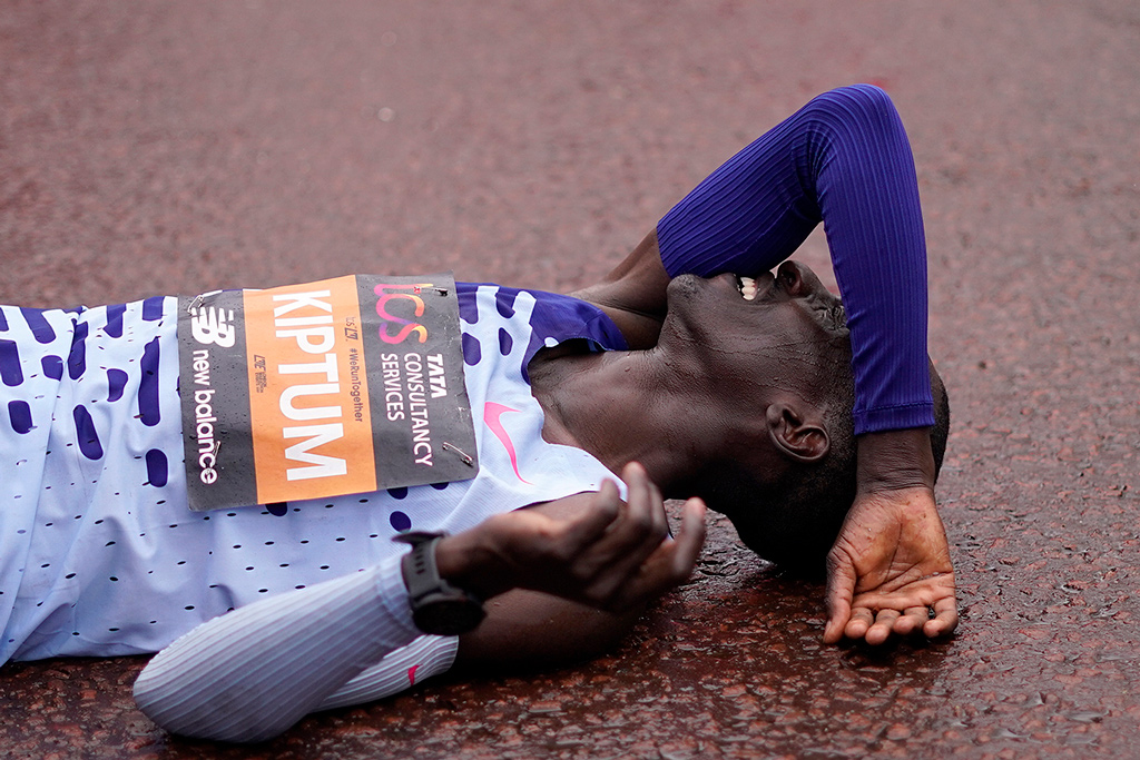 Он стал первым, кто сделал это быстрее, чем за 2 часа 1 минуту. Киптум на финише всем своим видом показывал, что способен на большее. В последние несколько сотен метров он посылал зрителям воздушные поцелуи.