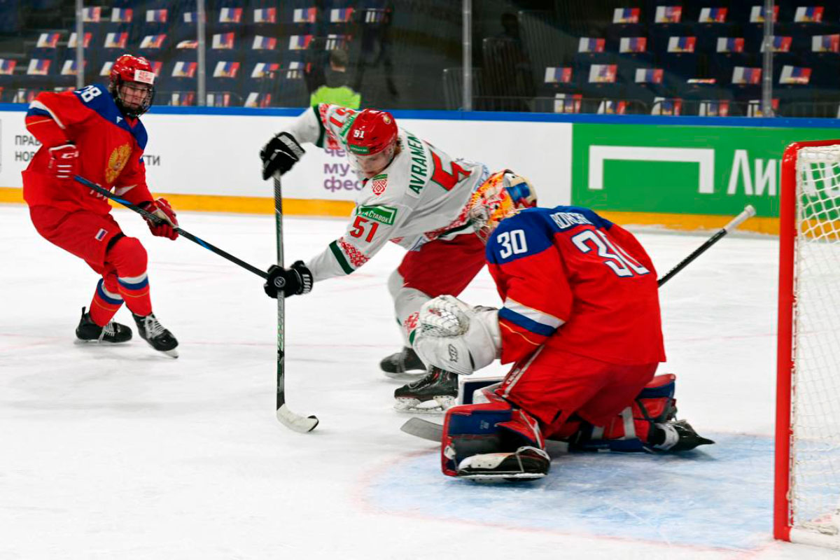 Молодежная сборная Беларуси по хоккею U20 начала свое выступление на Кубке Будущего с поражения, уступив команде России U18 со счетом 2:3.