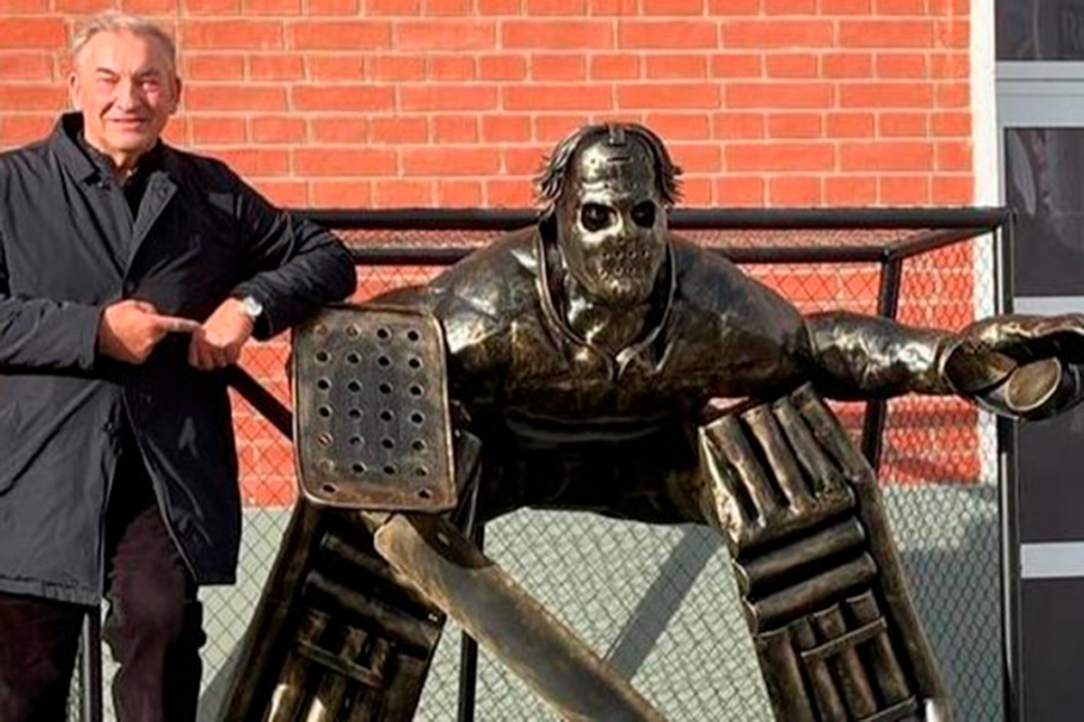 В этом году известному хоккеисту исполнилось 70 лет – это немного запоздалый подарок к его юбилею. Изготовило статую вратаря ЗАО "Курганстальмост".