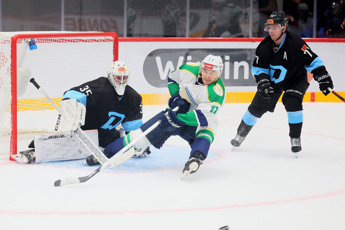 В первом матче белорусские "зубры" встретились с командой "Салават Юлаев" и выиграли со счетом 6:4.