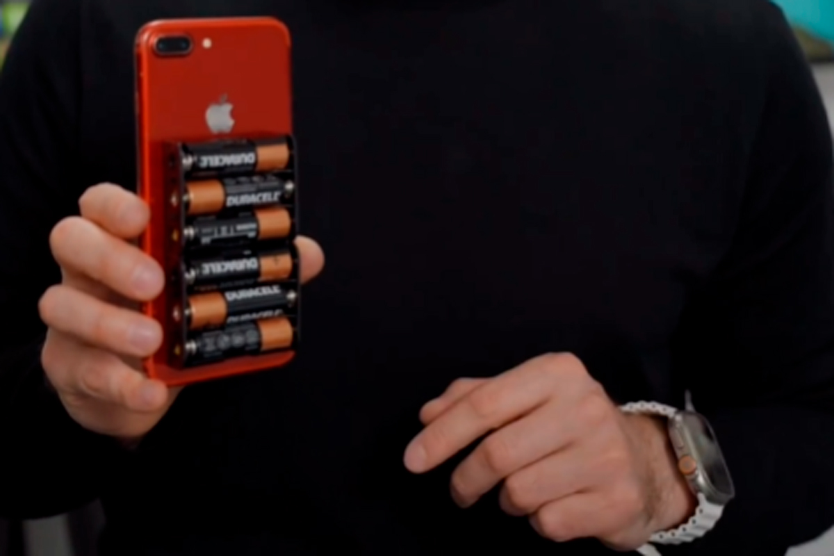 Минский сервис по ремонту техники Apple переделал iPhone 8 Plus для работы от шести пальчиковых батареек формата АА.