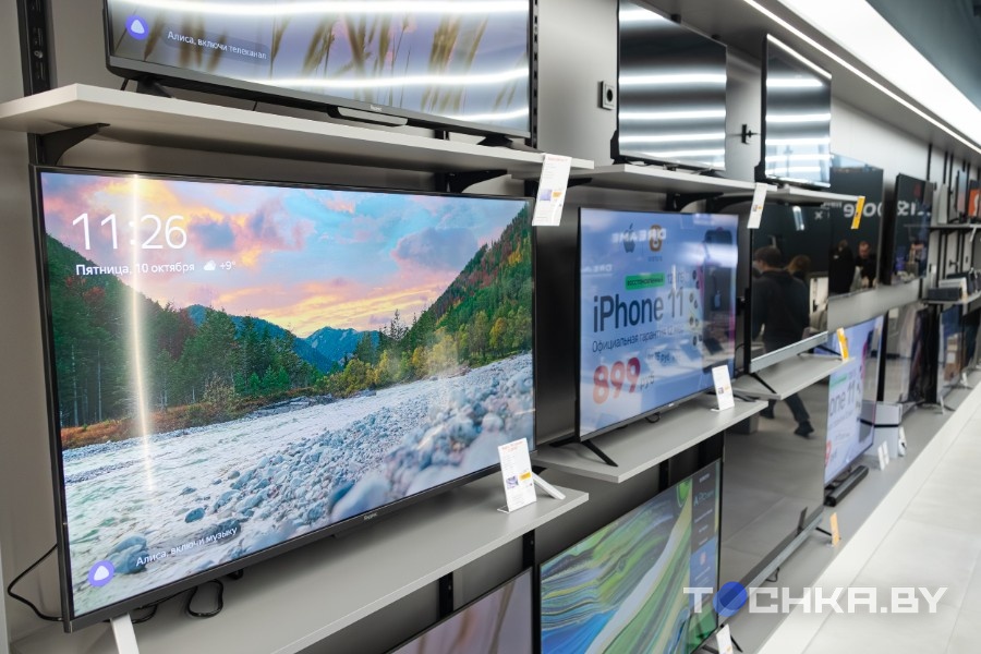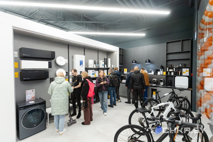 В просторном светлом зале на 200 м2 более 3000 товаров. Выбор огромный – смартфоны, ноутбуки, телевизоры, роботы-пылесосы, техника для дома, здоровья и красоты. Есть даже велосипеды.