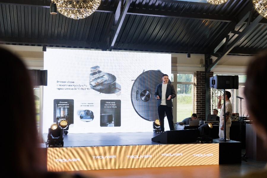 Гул голосов стихает, когда стартует презентация новинок бренда. Менеджер по маркетингу Trouver в Беларуси Анастасия Асташевич со сцены анонсирует не просто показ бытовой техники, а настоящую революцию в домашних делах.