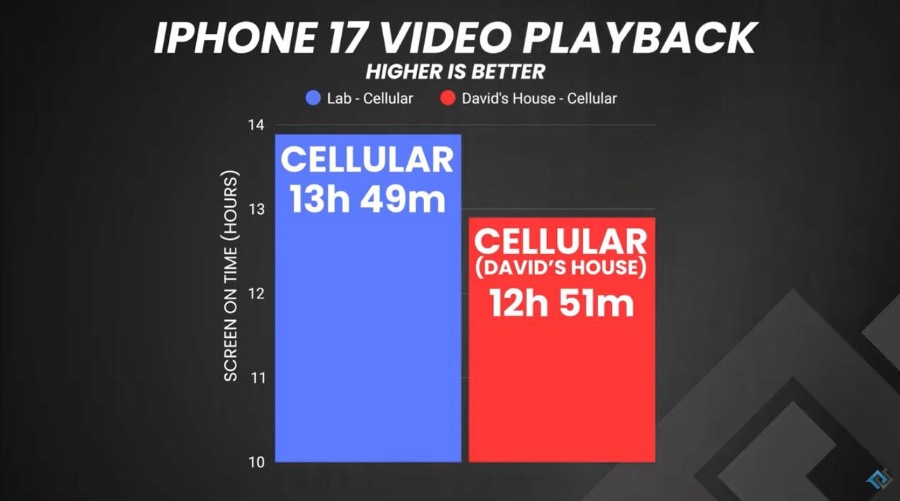 Ближе к базовой станции с хорошим покрытием – почти лабораторные условия – он получил 13 часов 49 минут воспроизведения видео, тогда как дома смартфон продержался 12 часов 51 минуту.
