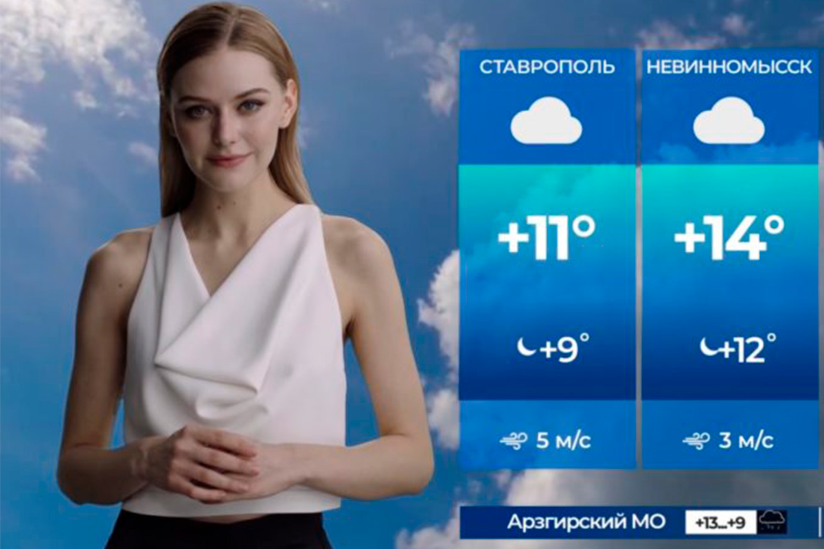 На российском телевидении теперь есть ведущая, созданная нейросетью. Ее зовут Снежана Туманова и работает она на ставропольском канале "СвоеТВ".