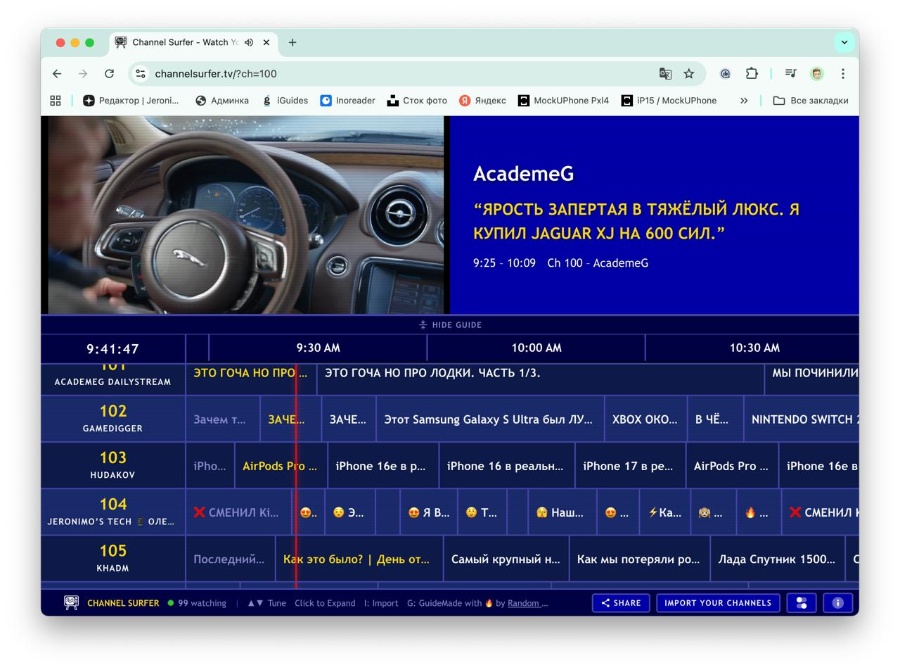 Веб-приложение от энтузиаста называется Channel Surfer.