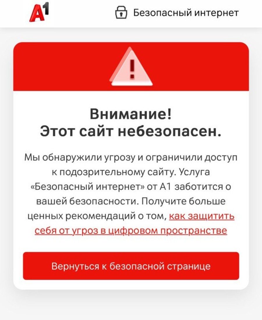 В случае с А1 достаточно зайти в личный кабинет на сайте или в приложение оператора и включить "Безопасный интернет". Услуга выделена яркой иконкой на стартовой странице. Вот и все.