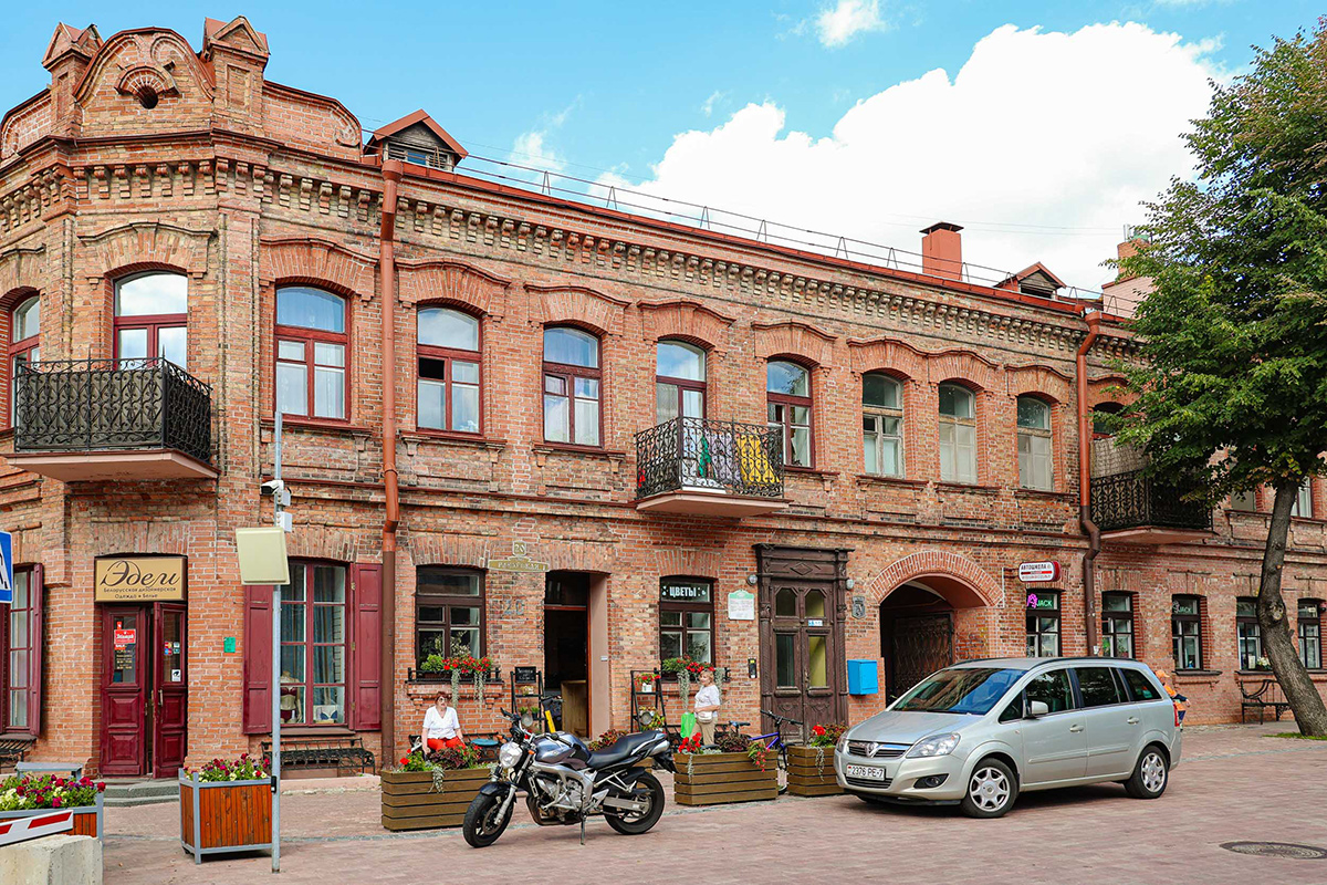 Спустя время здесь надстроили второй этаж и разместили первый кинотеатр Минска "Беларусь". Однако происхождение выдают сохранившиеся полуциркулярные окна первого этажа.