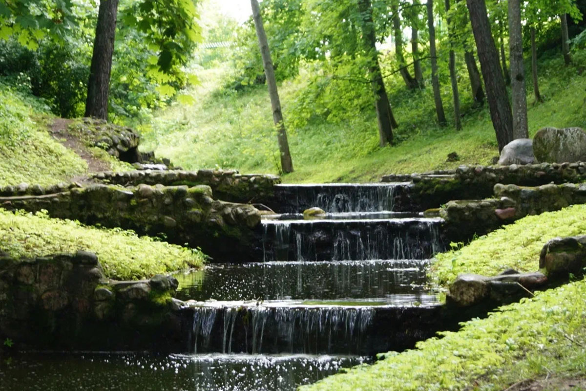 Родники и череда каскадов есть в старом парке Тышкевичей в Логойске.