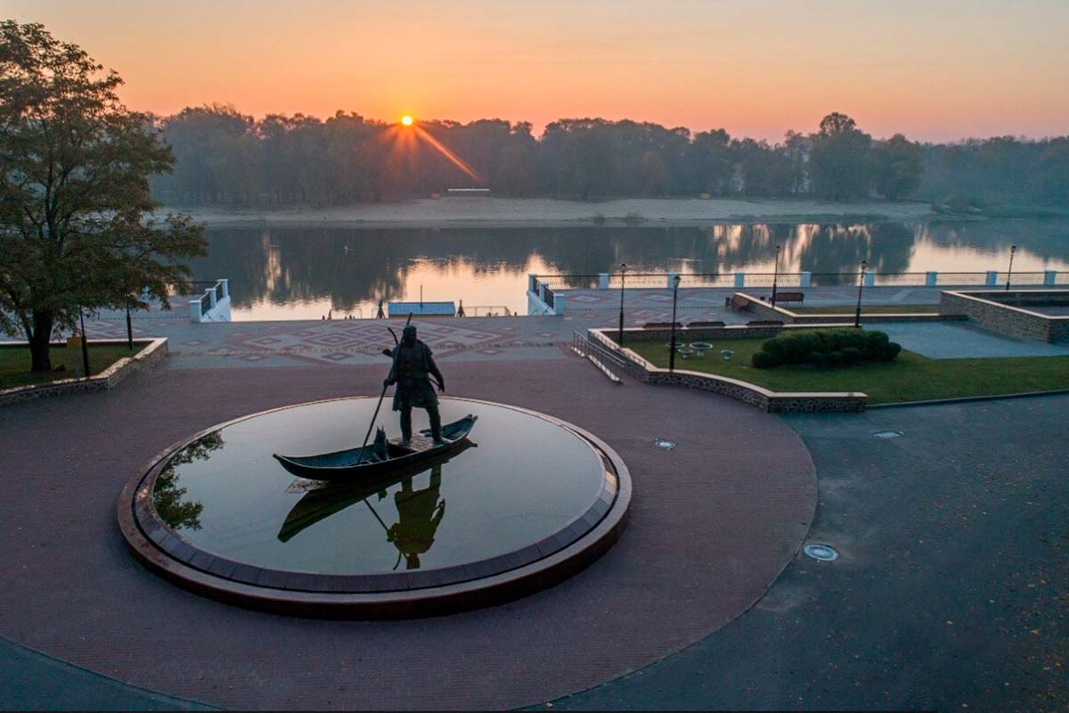 Скульптор изобразил лидера запорожских казаков в полный рост. Как шутят местные жители, плечи бронзового Хмельницкого достаточно широки, чтобы уместить несколько небольших стай голубей.
