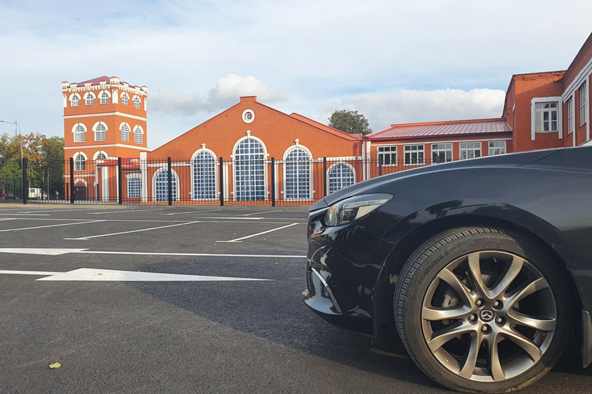 Интересно будет посмотреть и на "пинскую костку" ("трилинку") – шестигранную бетонную плитку, которой полностью выложена дорога. Покрытие изготавливалось из базальта и только затем заливалось бетоном.