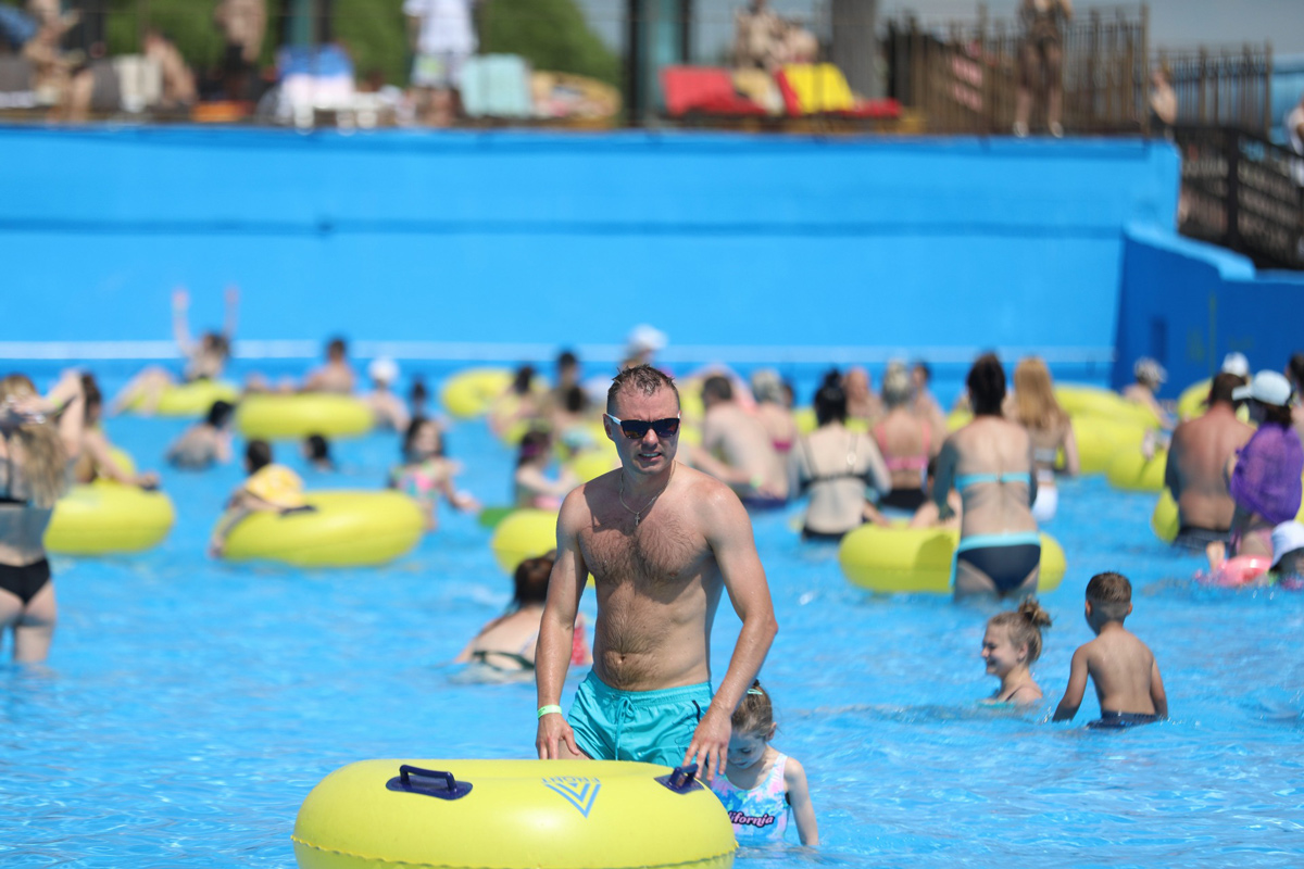 Кстати, в парке появились сотни новых лежаков, а от жары можно спастись под зонтиками. Вода во всех бассейнах с подогревом – в районе 25 градусов.