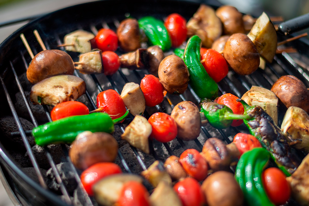 Овощи на гриле могут как стать легкой и полезной закуской, так и заменить мясной шашлык. Можно использовать болгарский перец, цукини, помидоры.