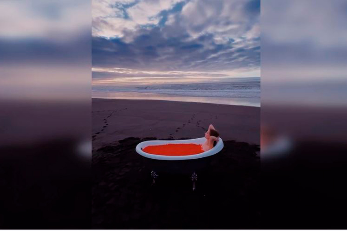 Фотохудожница Кристина Макеева поделилась занимательными снимками, на которых обнаженная модель на побережье Камчатки "купалась" в ванне с красной икрой.