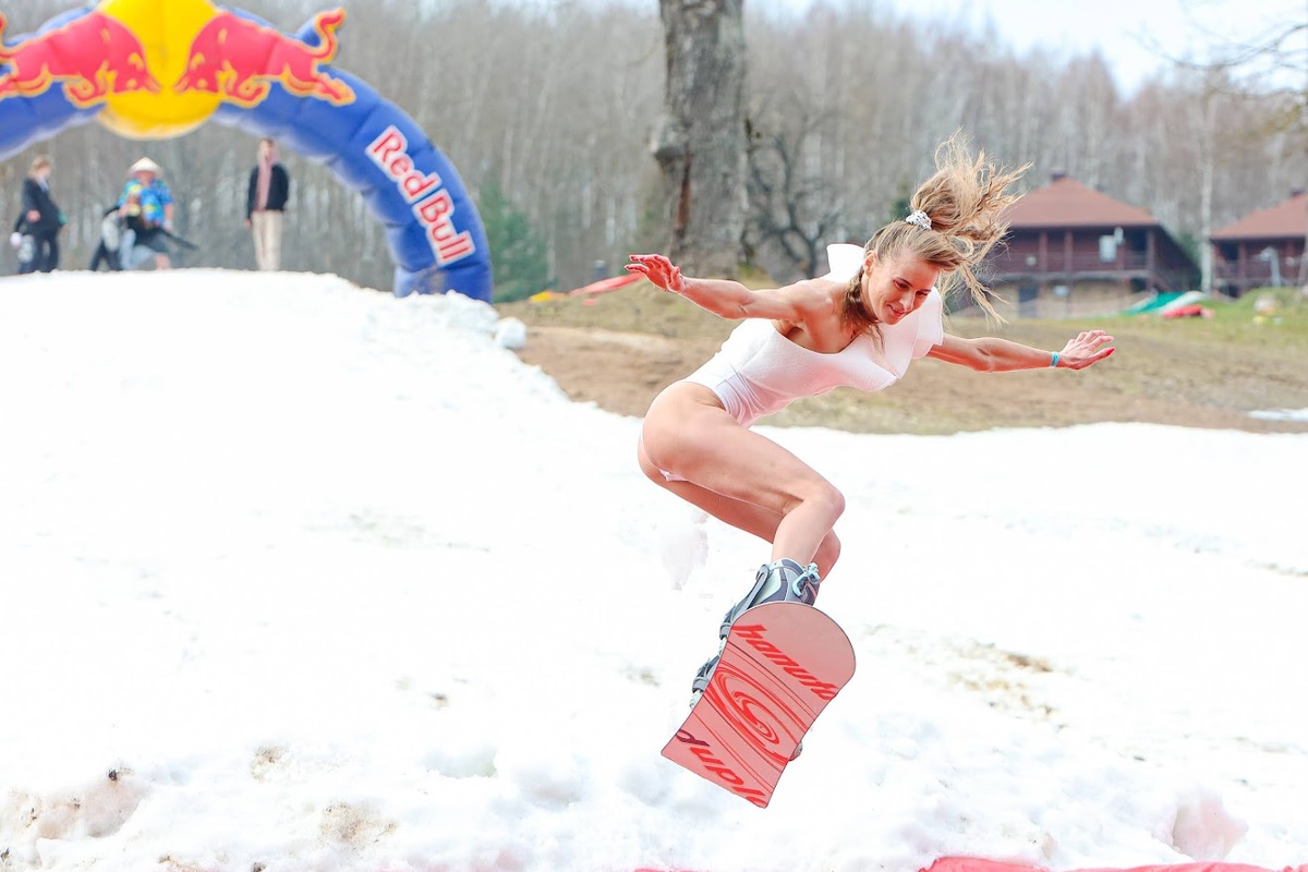 Снег сошел. Осталась только узкая полоска на склоне лыжного комплекса "Логойск". Внизу склона бассейн. Организаторы фестиваля соорудили небольшой трамплин, чтобы участники эффектнее входили в воду. Отставить панику – вода нагрета.