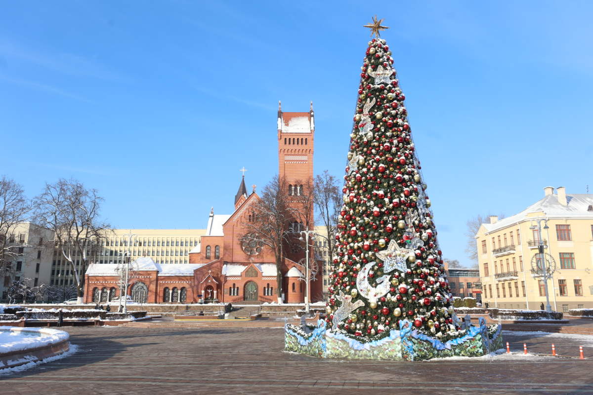 На площади у Красного костела наконец завершили украшать символ Нового года.