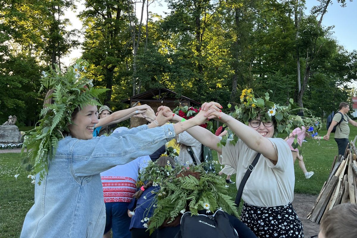 В парке "Сула" в ходе мастер-класса по плетению купальских венков любой желающий мог сплести украшение по своему вкусу, разнообразив березовую основу папоротником, полынью, ромашками, тысячелистником и другими травами. Почему плели венки на Купалье?