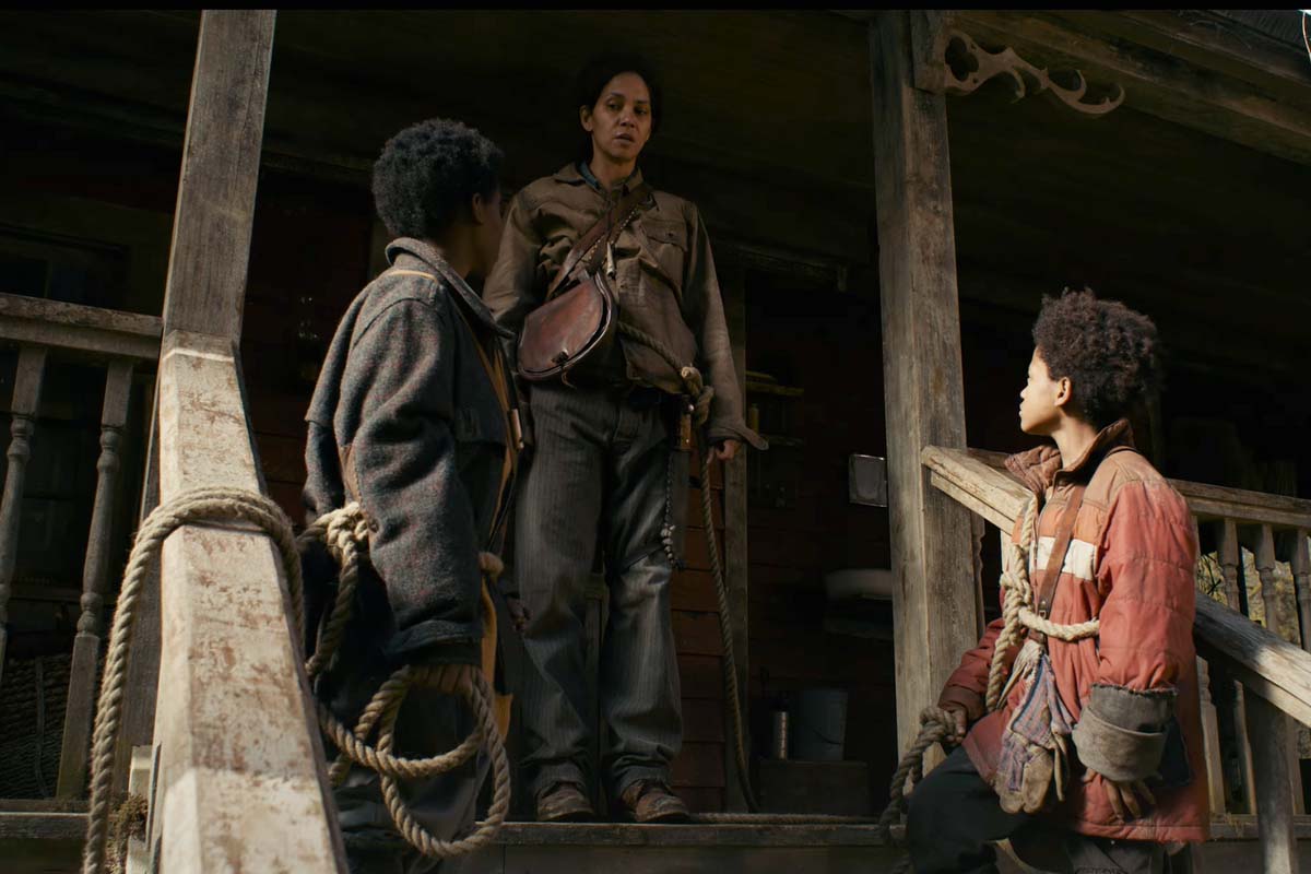 Они располагаются в отдаленном доме среди леса без электричества и связи. Каждый раз, выходя за пределы своего жилища, мать привязывает себя и детей веревками, чтобы не потерять друг друга в случае приближения опасности.