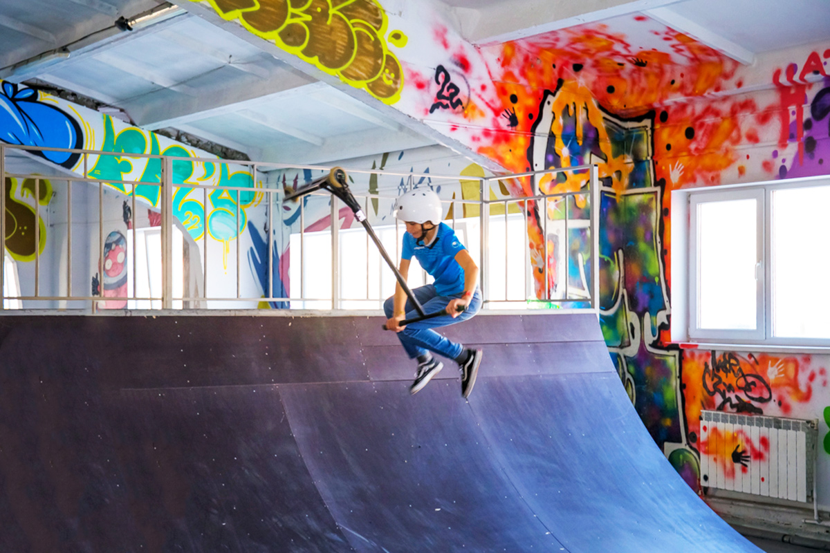 Владельцам удалось на 700 "квадратах" разместить профессиональное оборудование для выполнения различных трюков на скейте, роликах, самокате или велосипеде.