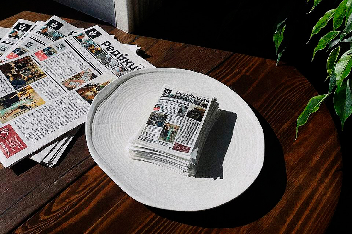 В таком необычном виде в заведении решили подавать знакомое многим на просторах СНГ угощение "Молочная девочка": внутри газетных листов (абсолютно съедобных) находится ванильный бисквит и крем из сгущенного молока.