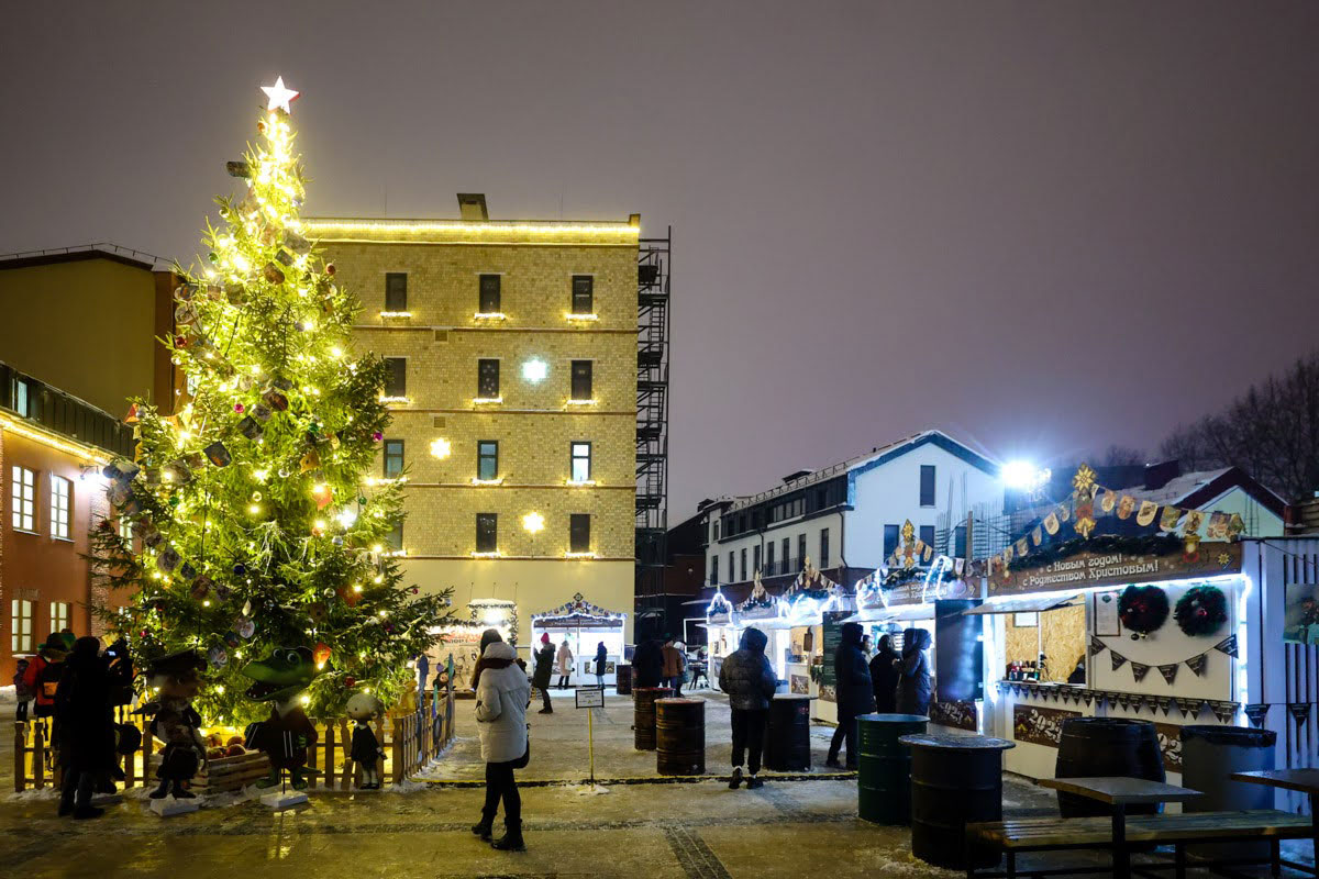 На территории разместятся ремесленный маркет, где можно будет купить украшения, подарки и елку для дома, уличный кинотеатр, романтические фотозоны, яркие фотобудки и многое другое.